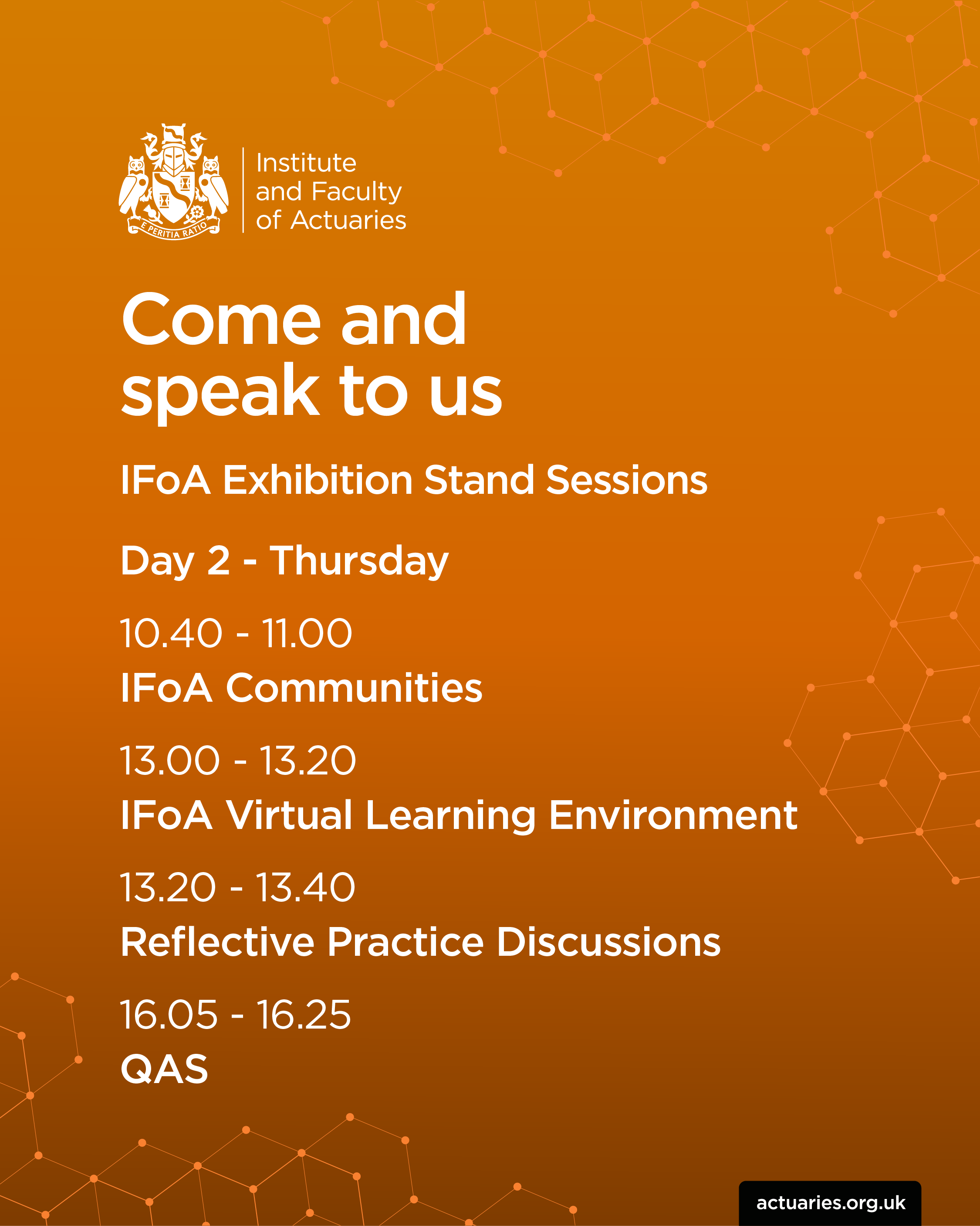 We’re excited to offer IFoA members the opportunity to participate in an in-person Reflective Practice Discussion (RPD) at Life Conference 2025. Spaces are limited and will be allocated on a first-come, first-served basis. Participants will be asked to share their CPD log in advance to help inform the discussion.
